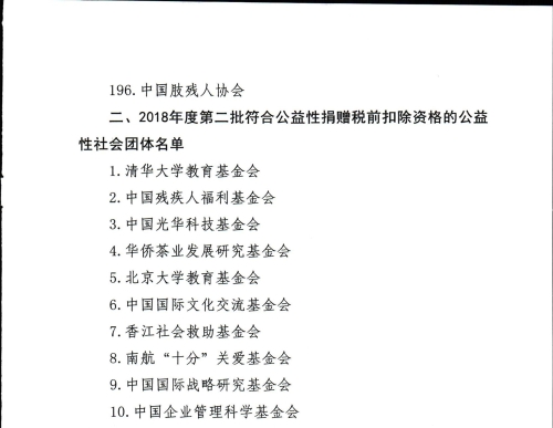 关于2019年度和2018年度第二批公益性社会团体捐赠税前扣除资格名单的公告